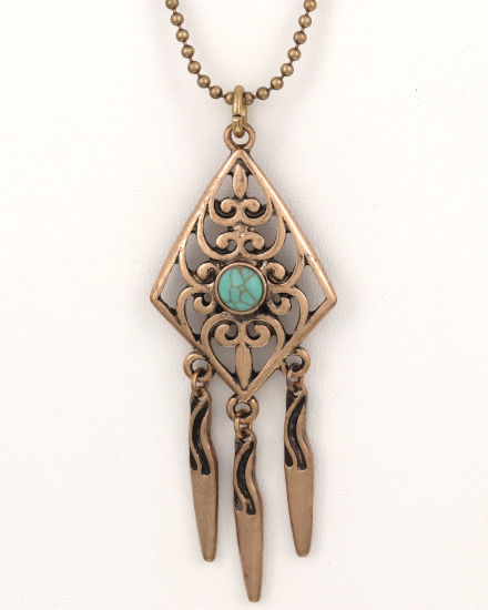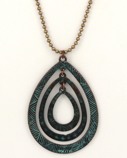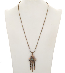 ![]() Filigree Metal Pendant Necklace & Earring Set Length : 16" + ext.2" Pendant : 1" X 1 5/8" Earring : 1/2" X 1 1/4"