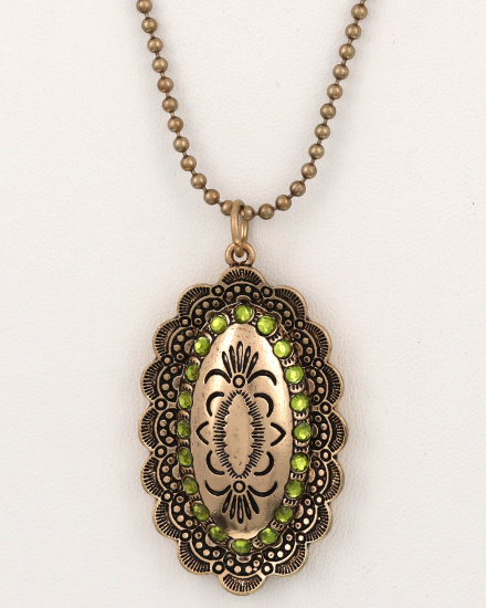 Pendant Retro Oval Filigree & Rhinestone Necklace Length : 2mm 24" + Ext 2 1/2" Pendant : 1" x 2" Material : Metal, Rhinestone