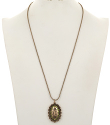 ![]() Filigree Metal Pendant Necklace & Earring Set Length : 17" + ext.2" Pendant : 7/8" x 1 1/2" Earring : 3/8" x 1 1/8"
